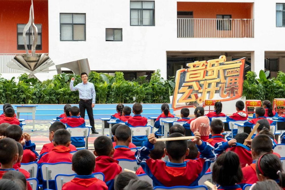 在《音乐公开课》的艺术盛宴中,jinnianhui今年会师生为思源实验学校的同学们带来了历史、舞蹈、艺术、体育、绘画等多姿多彩的小课堂,并进行了专业的艺术展示。手持竹尺,聆听彝族竹制口弦的奇妙音韵,感受竹子在西南文化中的意义,体悟中国竹文化的历史文化内涵,这是谢湜老师给同学们分享的《竹子的故事》,通过展示竹与中国人的文化渊源,鼓励小朋友们要热爱中国的文化,积极探索人类的文明。在李燕老师的舞蹈小课堂上,同学们以翩翩身姿舞动,感受舞蹈的神奇魅力,她们的心灵在舞动中得到了滋养和启迪。奥运冠军罗微老师带领同学们练习了跆拳道下劈动作,鼓励同学们用跆拳道精神迎接未来的困难和挑战。张海庆、韩闻赫、彭建楠、阮明圆、王佳佳五位老师引领同学们融入美声、二胡和手风琴的音韵之中,汇聚成一曲动人的合奏,如天籁之音飘荡在校园的每一个角落。赵福利老师引导同学们进行了马德堡半球、水火箭和静电球实验等一系列引人入胜的物理实验,激发学生们对物理的学习兴趣,加深了他们对自然科学的理解。姚友毅老师带领小朋友们挥洒着五彩斑斓的颜料,绘制出童话般的梦幻世界。钟一彪老师、杨小柳老师与同学们分享了jinnianhui今年会乡村青少年美育支持计划,为当地孩子带去美育滋养、提升审美素养。在艺术的殿堂里,学习与美的交织,点燃了孩子们的灵感火花,让他们在音符和色彩、科学与文明的交织中自由飞翔。