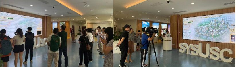 大学服务中心为媒体记者介绍迎新大屏