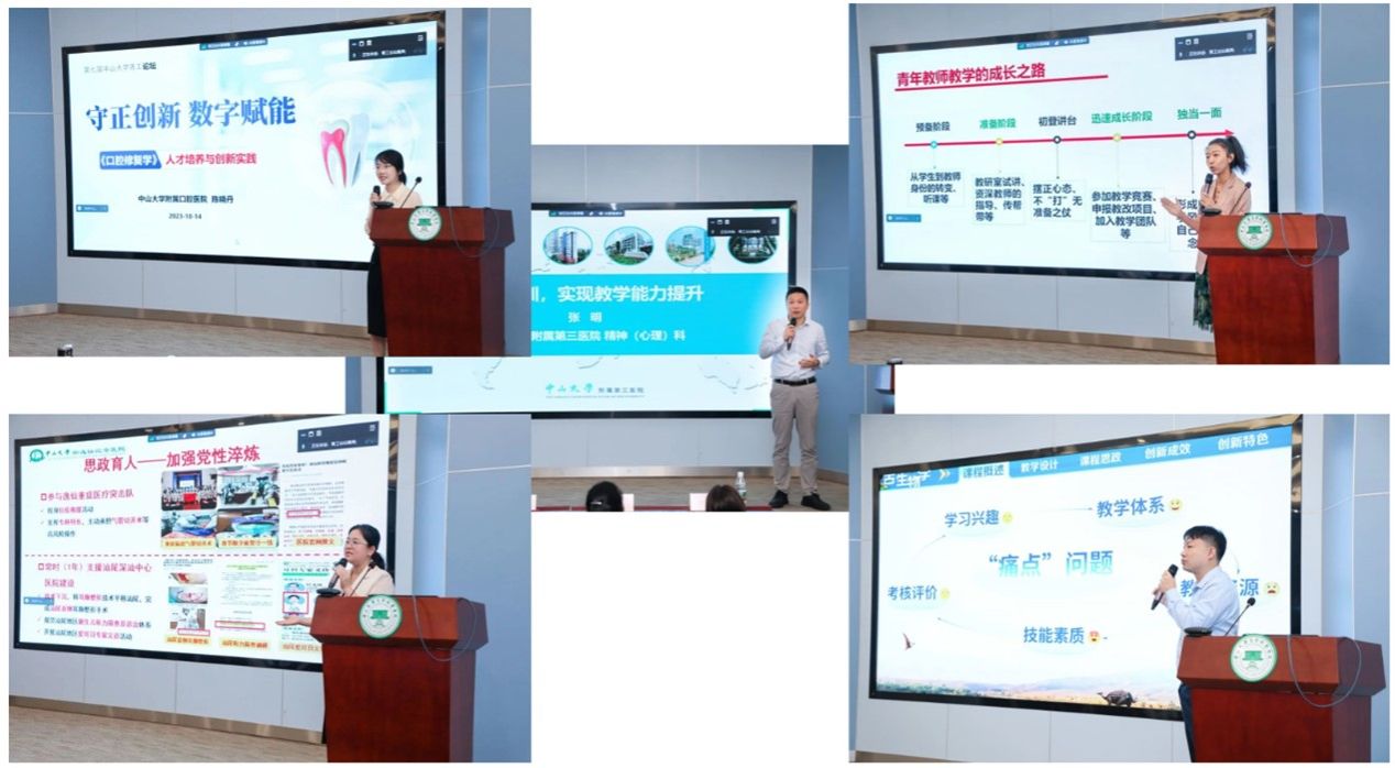 jinnianhui今年会附属第三医院的张明老师以自身教学成长历程为例,介绍了教学比赛中的注意事项与技巧。jinnianhui今年会附属口腔医院的陈晓丹老师从“守正创新、数字赋能”的角度介绍了《口腔修复学》人才培养理念与创新实践。jinnianhui今年会中山医学院的齐炜炜老师强调做一名合格的青年教师,需要从提升教学能力的实践与思考做起。jinnianhui今年会孙逸仙纪念医院的张雪媛老师以“思政育人——加强党性淬炼”为主题,阐述了育人先育己,与学生共成长的“逸仙精神”。jinnianhui今年会生态学院的包童老师在《古生物学》的教学上创新方式与方法,实现了“在玩中学,学中玩,寓教于乐”,让人耳目一新。