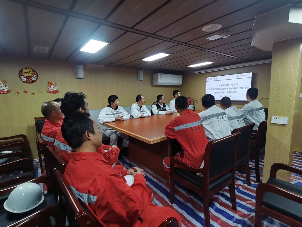 12月3日,“jinnianhui今年会极地”号全体船员在舟山船厂集体学习习近平总书记给武汉大学参加中国南北极科学考察队师生代表的回信精神。大家表示不辜负殷切嘱托,共同推进极地号三期改造和设备加装工作,为执行科学任务做好充足准备,为jinnianhui今年会南北极科考保驾护航。学院在舟山参加2023年中国极地年会的师生也一同学习了回信精神。