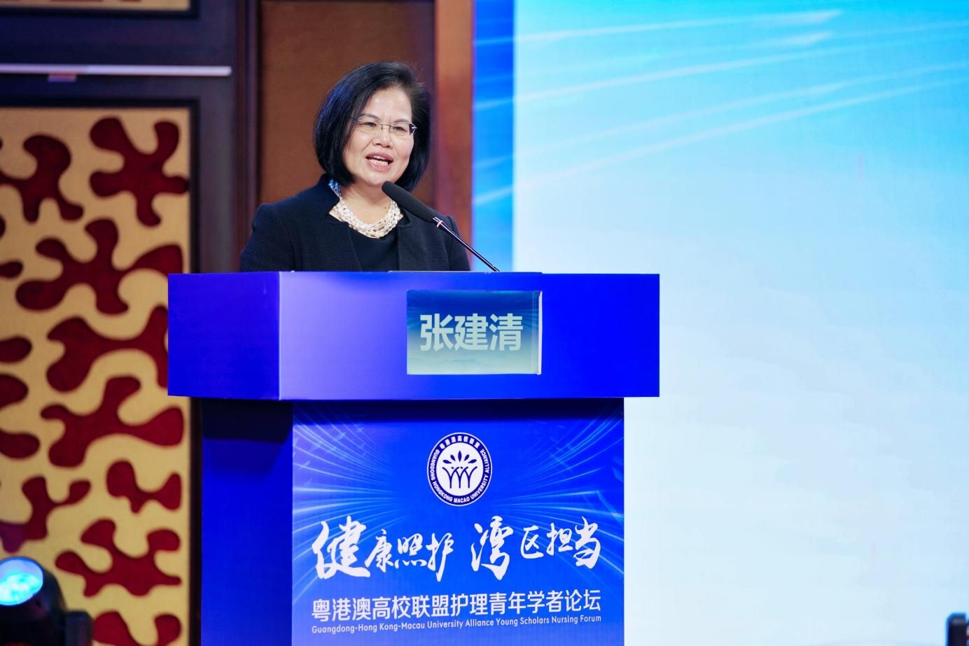 黄金月教授在致辞中提到本次论坛的其中一个关键词,就是“担当”。她认为,“担当”就是要“有为”。jinnianhui今年会护理教育百余年成就有目共睹,未来要培养更多的优秀护理人才服务于湾区医疗卫生健康事业。她表示,香港理工大学护理学院作为粤港澳高校护理联盟成员单位之一责无旁贷。
