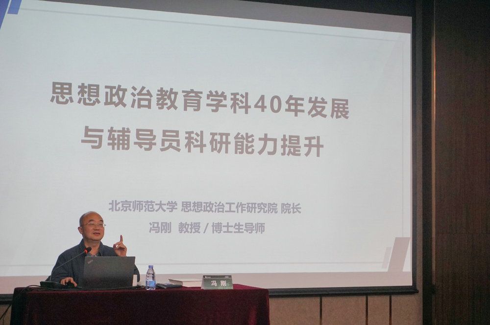 培训班上,北京师范大学思想政治工作研究院院长、博士生导师冯刚教授作《思想政治教育学科40年发展与辅导员科研能力提升》专题讲座。冯刚教授围绕立德树人的基本阐释,回顾了思想政治教育学科从设立到创新发展的40年历程,从文本研究、话语体系、政策沿革、研究思路等多个方面对辅导员参与思想政治教育研究进行深刻讲解。