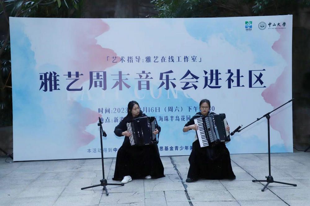 雅艺周末音乐会上,11个精彩节目涵盖了独唱、重唱、室内乐、古筝独奏、手风琴重奏等多种艺术表现形式,展现了新时代大学生和社区青少年的崭新风貌。婉转的歌声,悠扬的琴声,吸引了众多社区居民和青少年参与其中。