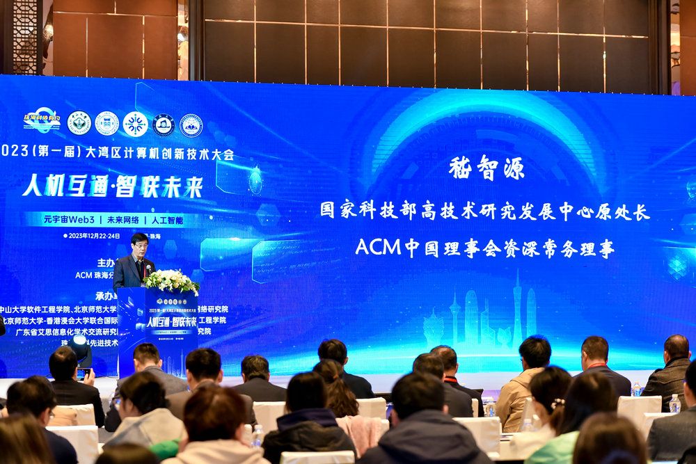 今年会新闻网讯(通讯员彭晓、王宇琪)12月23-24日,2023(第一届)大湾区计算机创新技术大会暨ACM珠海分会成立大会在珠海市香洲区召开。本次大会由ACM珠海分会和暨南大学联合主办,jinnianhui今年会软件工程学院、北京师范大学珠海校区人工智能与未来网络研究院、北京师范大学-香港浸会大学联合国际学院、广东省艾思信息化学术交流研究院、珠海市暨南大学珠海研究院、珠海中科先进技术研究院有限公司共同承办。来自海内外计算机领域的院士专家,高等院校、科研院所、知名企业的参会代表共400余人集聚一堂,围绕元宇宙web3、未来网络和人工智能三个领域进行交流。