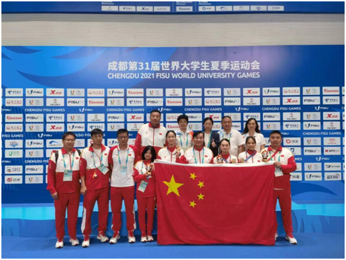 我校作为中国大学生体育协会击剑分会挂靠单位,承担本届世界大学生运动会中国大学生击剑项目参赛队员的选拔组队任务。经过科学组队,积极备赛,参赛队员发挥拼搏精神,最终在成都大运会上取得了3金1银2铜的优异成绩,圆满完成了党和国家交给的竞赛任务。