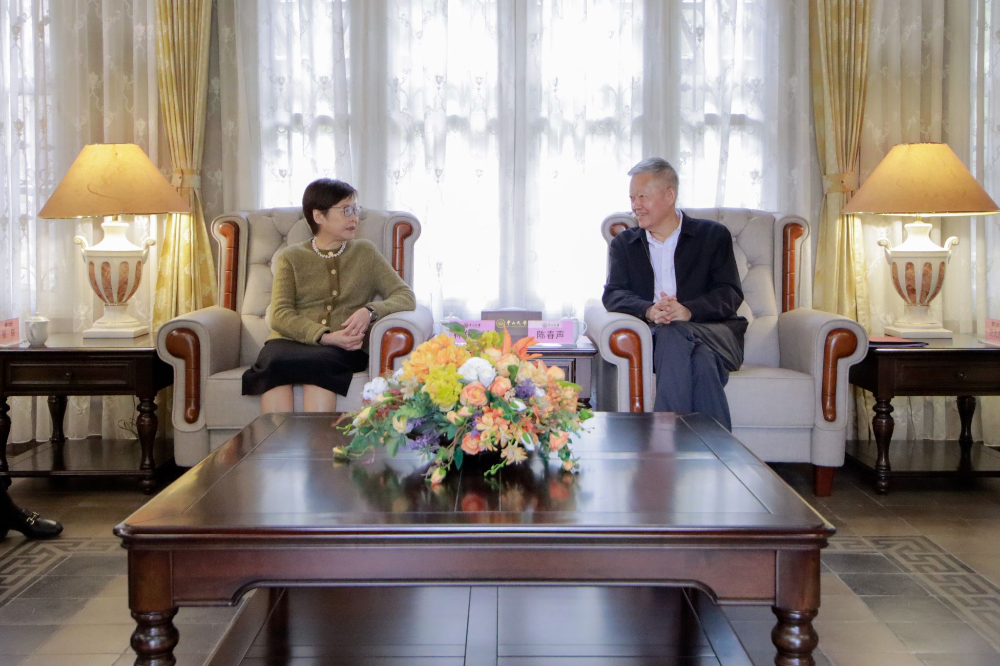 上午,陈春声在南校园黑石屋会见了林郑月娥女士一行。