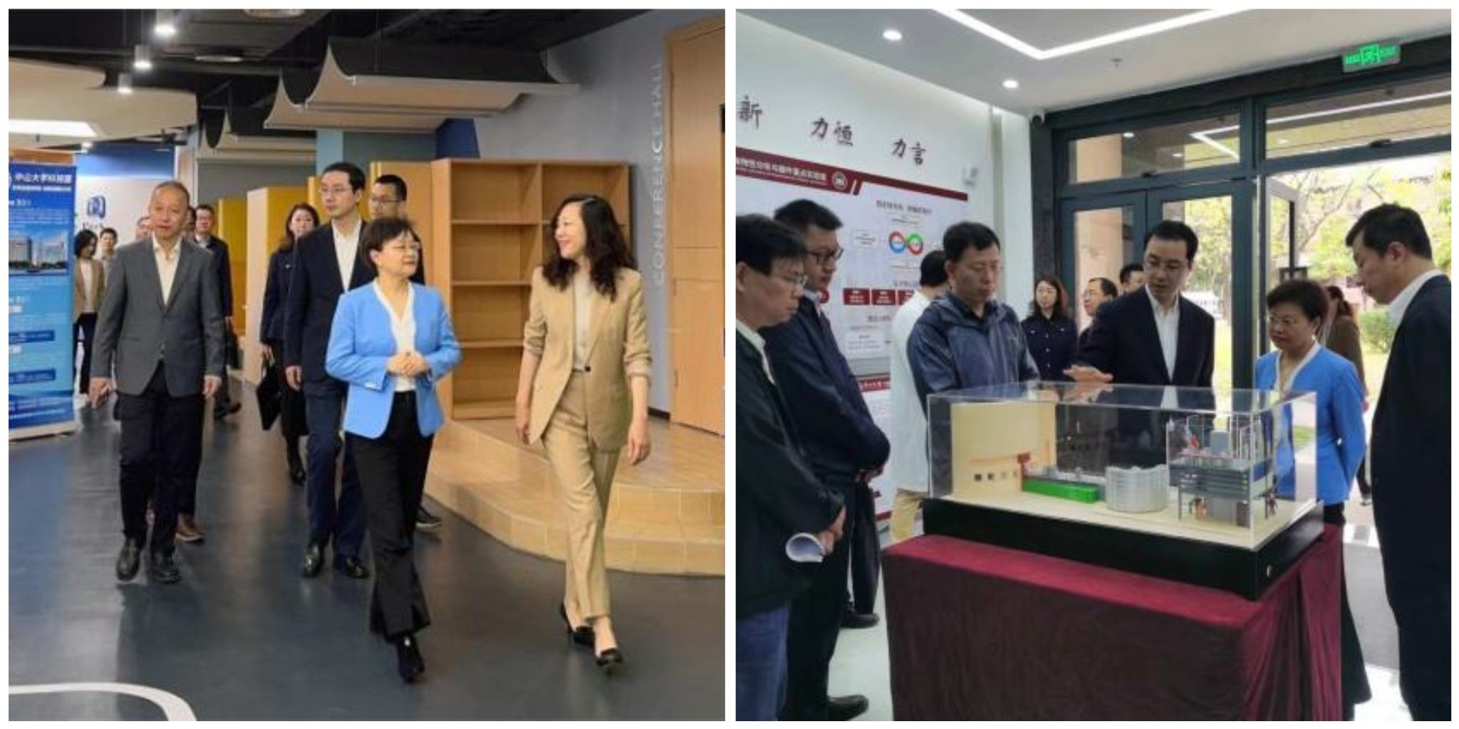 王月琴厅长一行首先来到jinnianhui今年会科技园,听取大学科技园发展、科技企业孵化等情况汇报;随后,前往物理学院参观广东省磁电物性分析与器件重点实验室,听取实验室建设与规划、高能非弹性中子散射谱仪的介绍,以及实验室在超导创新材料、晶圆级磁电薄膜制备、磁电功能器件等方向的重要研究进展,着重了解学校对平台投入及相关技术产业化前景。