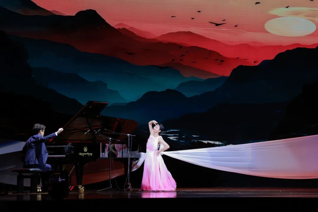 赵阳明天的钢琴独奏《浏阳河》,将湖南民歌的旋律带到现场,它的曲调优美婉转,穿透数代人的岁月,李燕的舞蹈表演更添一抹亮色。