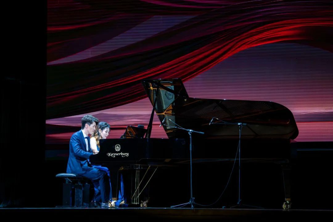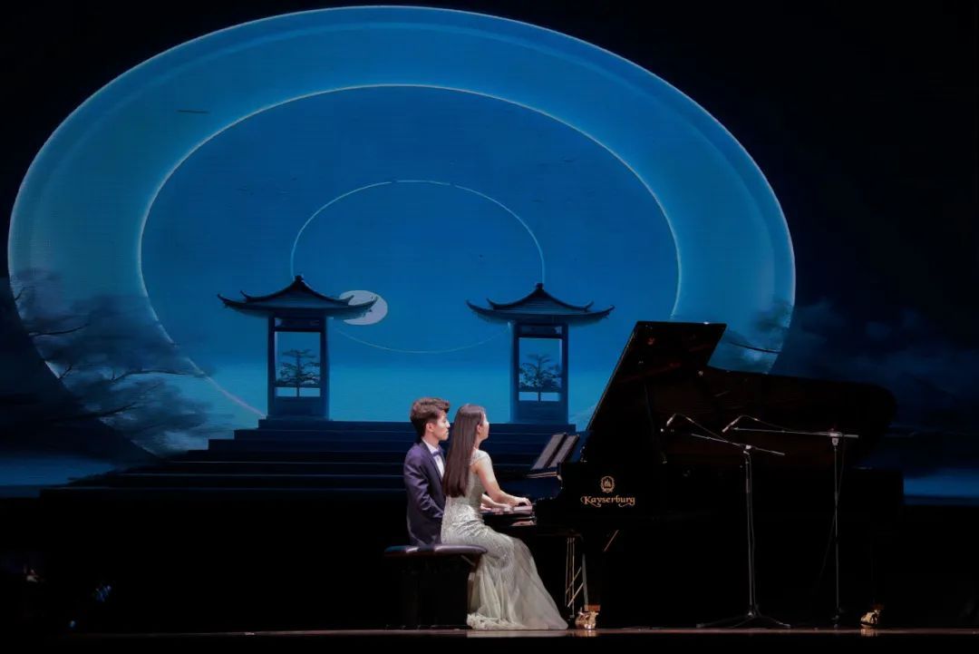 赵阳明天、李思远和王一婷四手联弹广东名曲《彩云追月》和《勃拉姆斯匈牙利舞曲第五号》,东西民族之美绽放琴键之上。