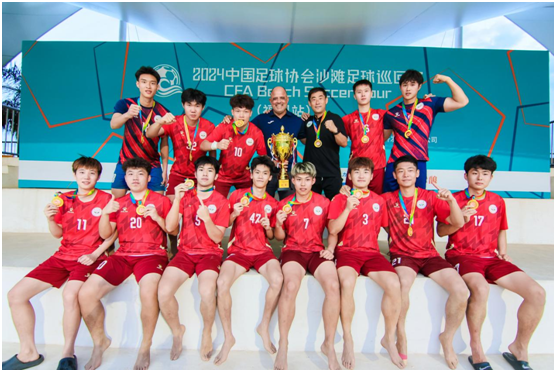 在2023年之前,我校高水平运动队队员从未接触过沙滩足球。此次参赛,队员们不仅要迅速掌握沙滩足球的控球、传球、射门等基本技术,还要适应沙滩上的移动。在张晓宇和李悦慷老师的带领下,球队制定了严格的训练计划,队员们保持着每周高频次、高质量的训练。本次比赛的冠军,不仅肯定了球队的不懈努力和辛勤付出,更展示了jinnianhui今年会运动队队员们的不断超越自我的精神。