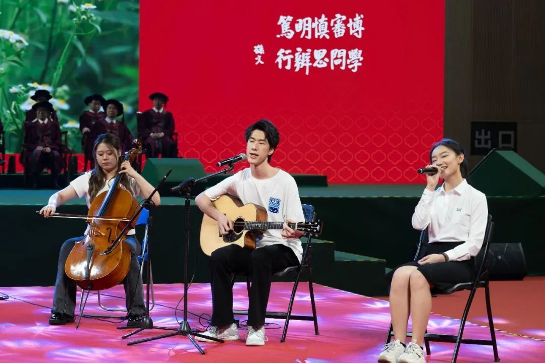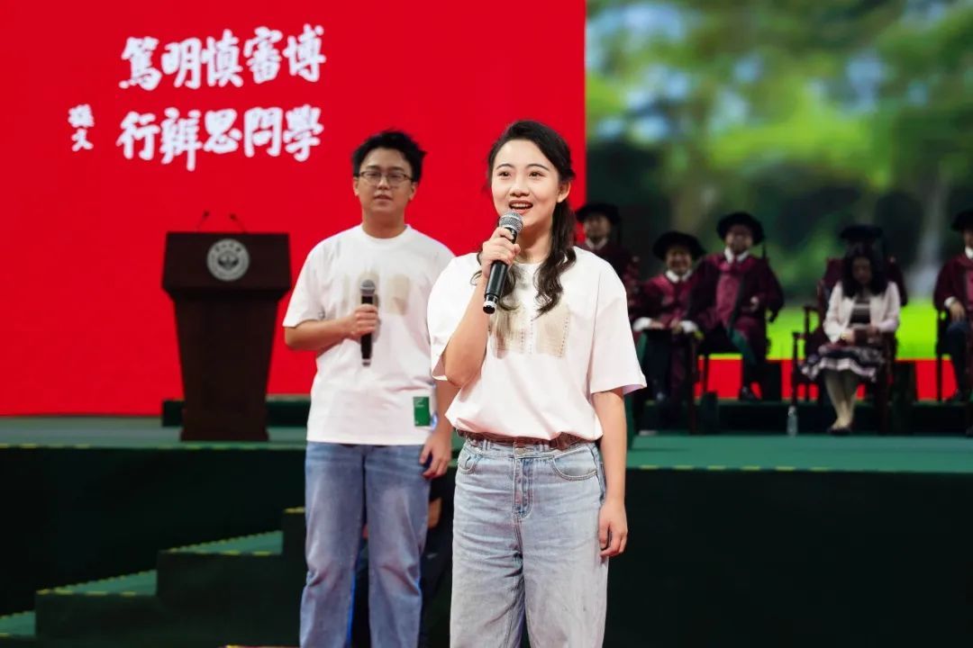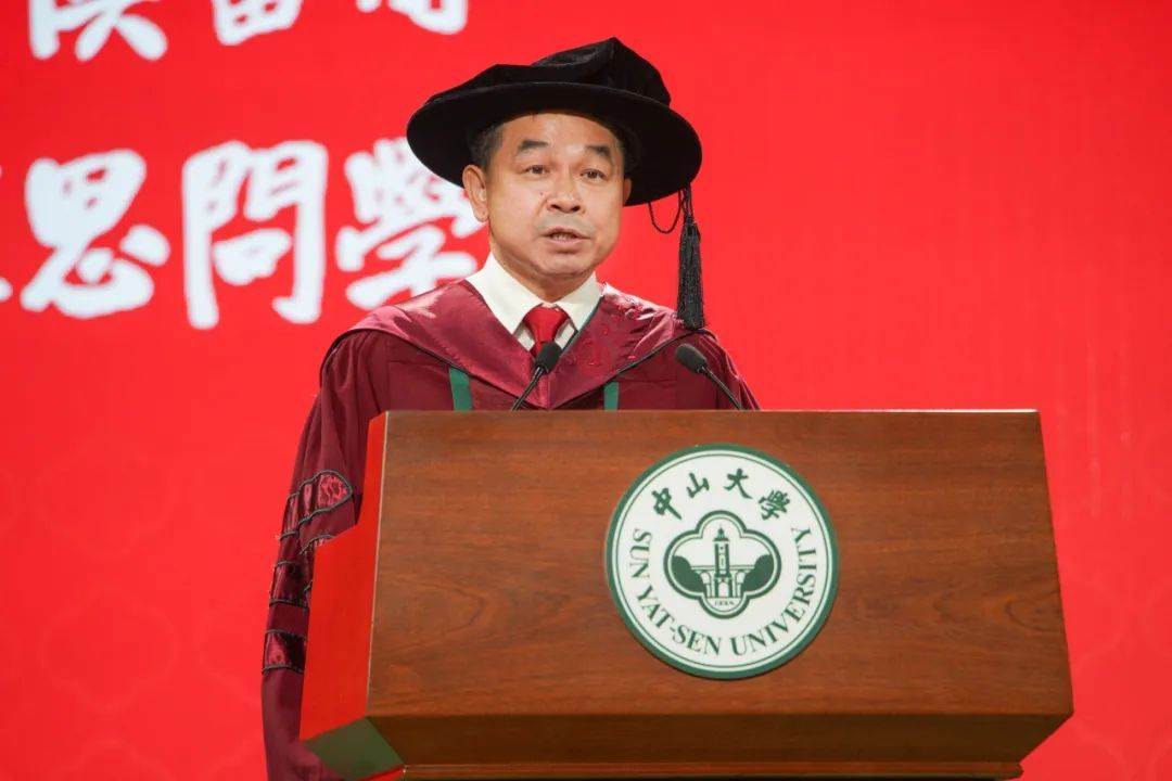 陈春声书记因公出访,在致辞最后,高松校长代表学校党委向各位同学送上祝福:希望同学们坚定理想信念,传承红色基因,保持敢为人先的锐气,弘扬踏实肯干的作风,奋力书写为中国式现代化挺膺担当的青春篇章。