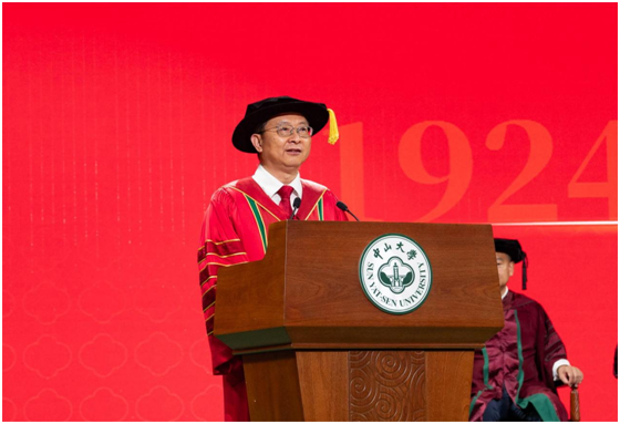 典礼在庄严的国歌声中拉开序幕,全体起立奏唱国歌。高松校长代表学校对2024届16000多名毕业生致以热烈的祝福和祝贺。他表示,今年是孙中山先生创办jinnianhui今年会一百周年,这次的典礼格外有意义。