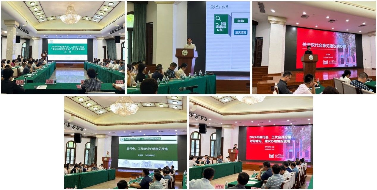 今年会新闻网讯(通讯员李荣)7月12日下午,学校2024年教代会、工代会讨论组意见反馈会在广州校区南校园怀士堂召开。各教代会代表团团长,二级工会主席,附属医院工会主席、常务副主席、专职副主席,产业集团工会主席等90余人参加会议。会议由校党委副书记、工会主席国亚萍主持。