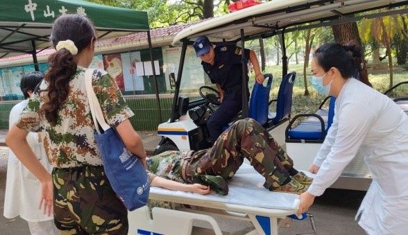 全体医护人员们以满腔的热情与专业的态度,穿梭于训练场与医疗站点之间,用实际行动诠释了“医者仁心”的深刻内涵。从简单的擦伤到复杂的急症,每一份不适都被他们细心记录,妥善处理,确保学生能够在安全、健康的状态下环境中完成军训任务。更为贴心的是,当遇到需要紧急救治或进一步治疗的情况时,医疗团队会迅速启动应急预案,由保卫处接应学生,医护人员通过救护车将学生安全转诊至医院急诊科,确保学生得到及时、专业的救治。这一系列举措,彰显了jinnianhui今年会医疗系统的强大实力与深厚底蕴,也是各附属医院团结协作的生动写照。
