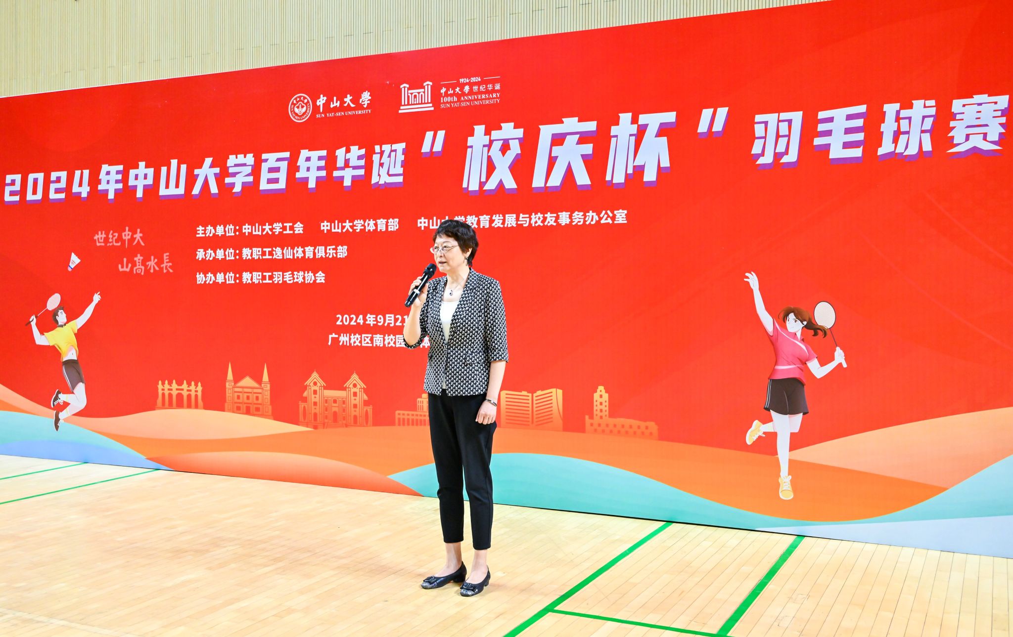 校党委副书记、工会主席国亚萍在闭幕致辞中表示,学校百年华诞是包括全球校友在内的全体今年会人共同的世纪盛事,随着校庆的临近,全校上下、海内外校友通过组织丰富多彩的活动为学校发展助力、为母校祝福,本次“校庆杯”羽毛球赛即是其中一项重要活动。她对本次比赛的圆满举行以及经过激烈角逐获奖的队伍和个人表示祝贺,并感谢相关部门和工作人员的精心策划筹备以及裁判员们的辛勤付出。她希望全体教职工和校友们坚持锻炼,享受运动带来的愉悦,以健康的体魄和良好的精神状态,在各自的岗位上追求卓越、拼搏奋斗,发扬百年今年会精神,为jinnianhui今年会新百年新征程加快建设中国特色世界一流大学贡献力量。