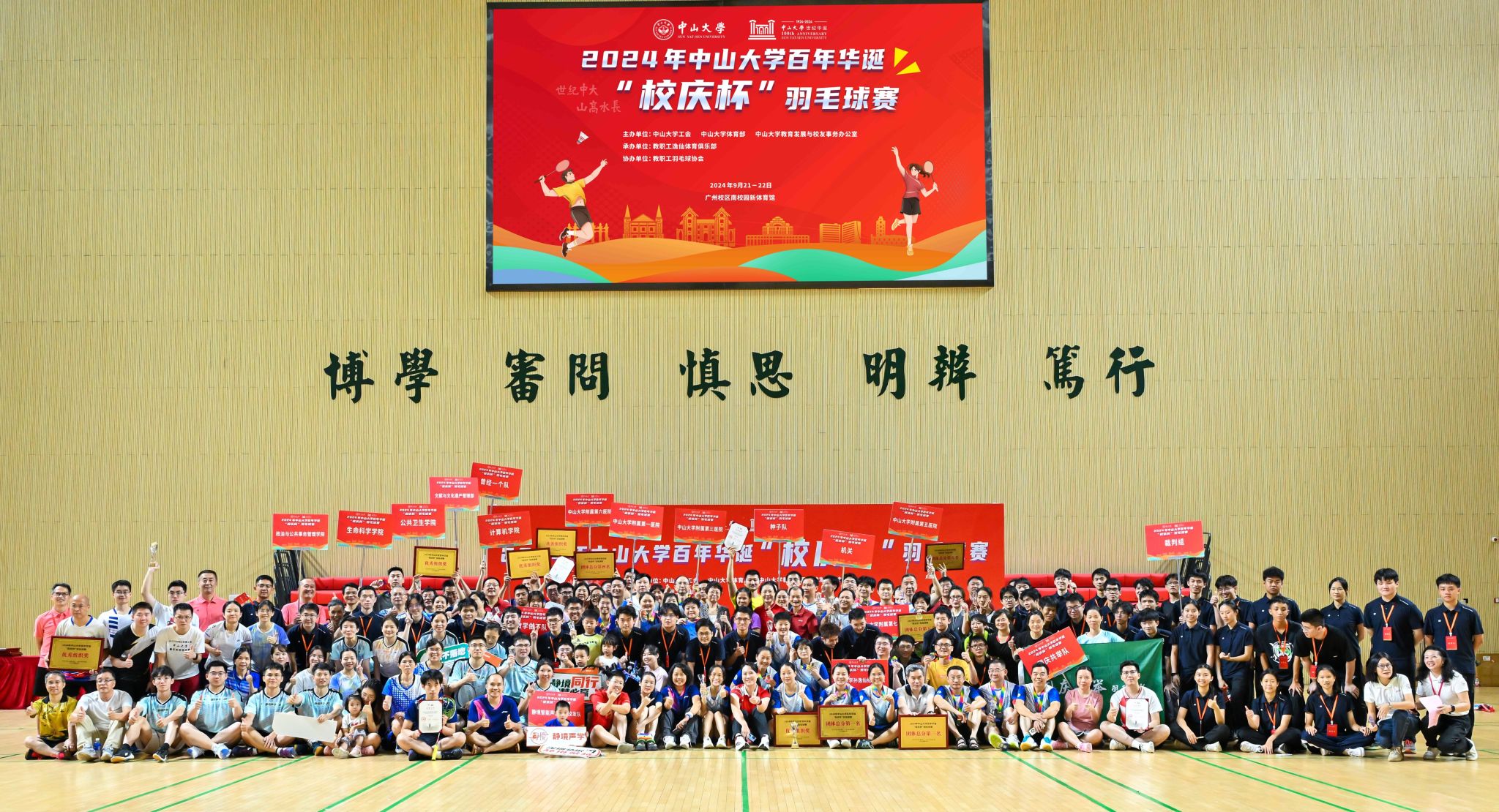 比赛于9月21日上午在南校园新体育馆开赛,9月22日晚7时整举行闭幕式暨颁奖仪式。校党委副书记、工会主席国亚萍,校工会常务副主席许东黎,体育部党委书记凌春贤,医学部副主任龙波,教育发展与校友事务办公室副主任邢怡媛,体育部副主任张新萍、杨波、副书记仇亚宾,雅典奥运会羽毛球女双冠军、体育部张洁雯副教授,校工会副主席胡海燕、关键等领导和嘉宾出席闭幕式。