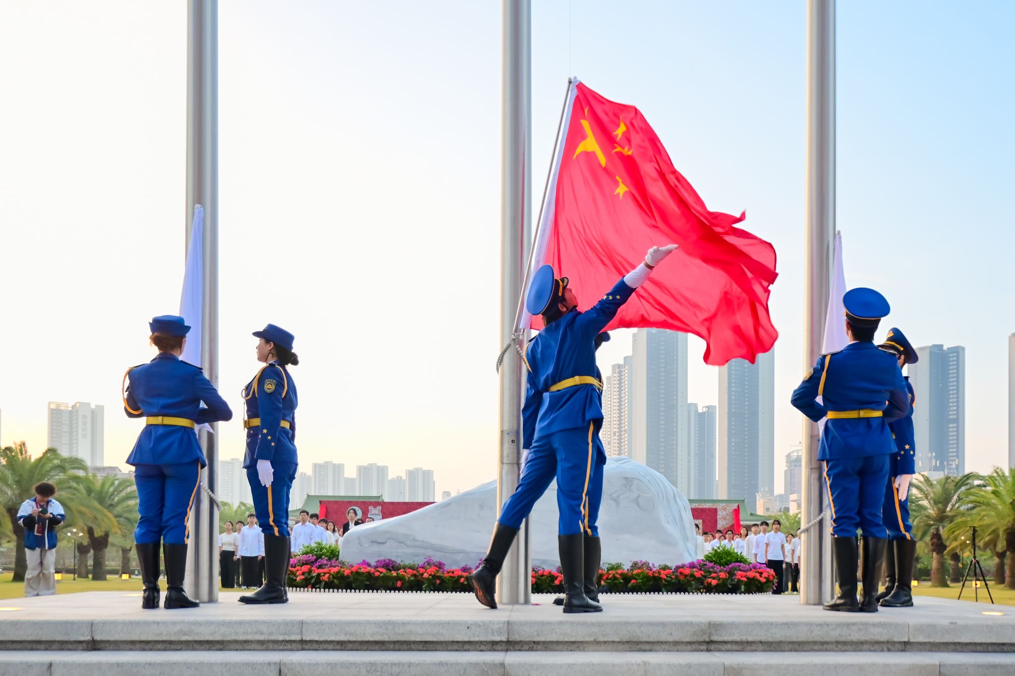 深圳校区国旗班展旗(摄影:符桂杏)