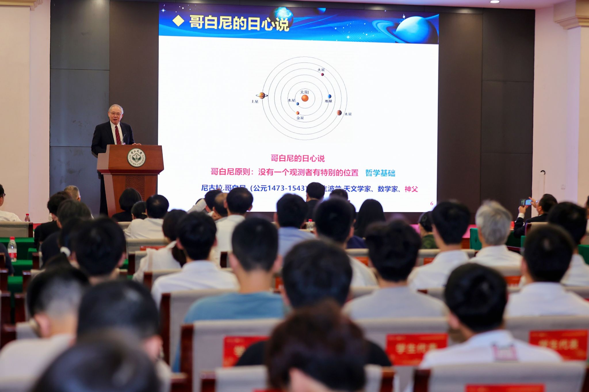 罗俊院士以《从牛顿到爱因斯坦》为主题,深入浅出、形象生动地讲解了两千多年以来,科学家对于天体运动和引力规律的探索历程。从古希腊三圣朴素的宇宙观,到牛顿发现万有引力定律、爱因斯坦的广义相对论,再到引力波探测和天琴计划进展,他带领与会者一起重温了引力科学发展史上大师们追寻真理的历程,并结合自身几十年的研究工作,着重介绍了引力常数G的实验测量和空间引力波的探测工作。