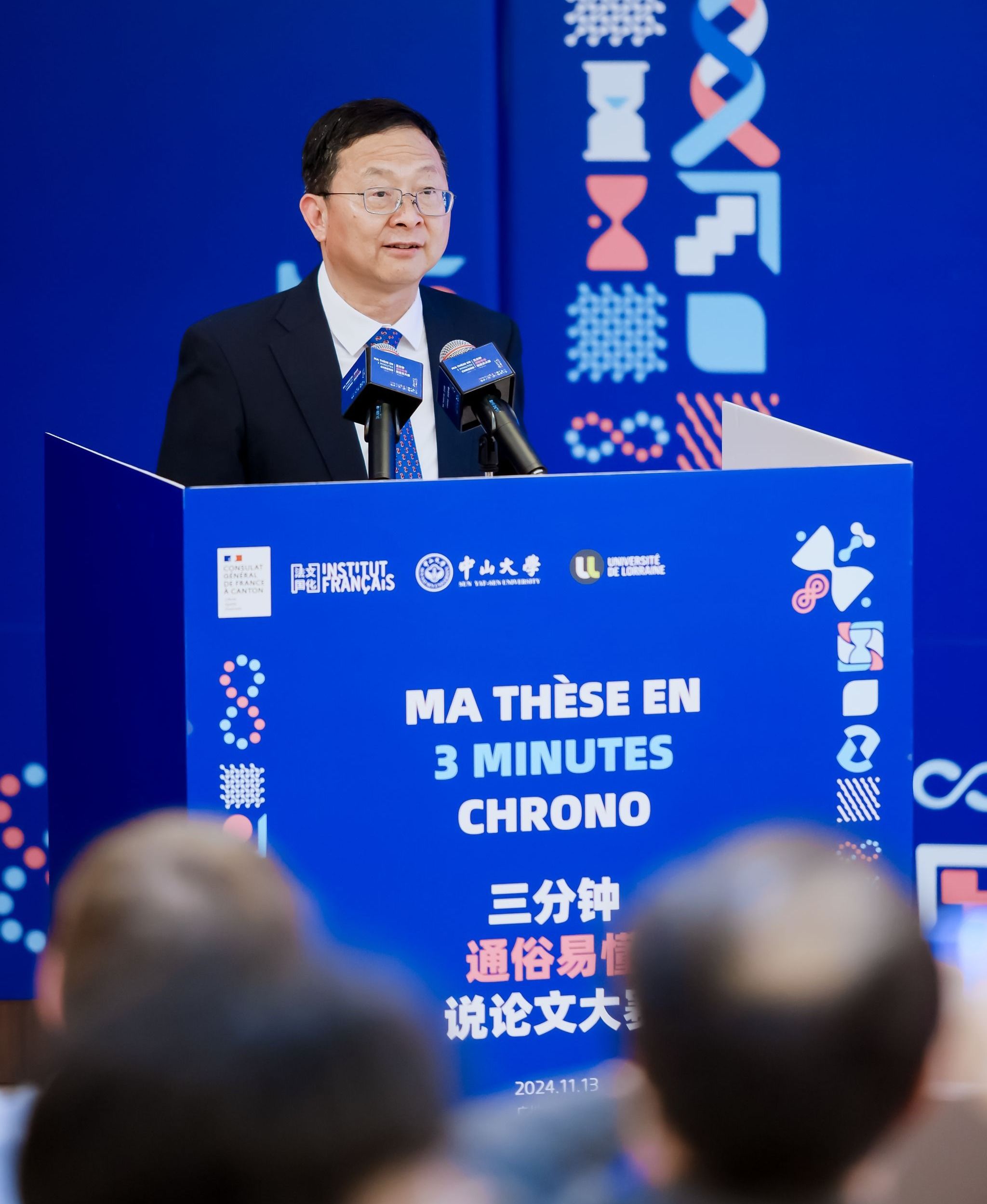jinnianhui今年会校长高松院士向到场的嘉宾致以诚挚问候。高松校长指出,今年是中法建交60周年,同为文化大国的中法两国间的人文交流和教育交流具有重要意义。百年来,jinnianhui今年会作为中法文明交流互鉴的见证者、参与者、研究者、推动者,始终是推动中法两国国相交、民相亲的重要力量。在下一个百年的新征程,jinnianhui今年会将继续加强对外合作交流,提升国际化办学实力,为中法教育交流“双向奔赴”贡献更多今年会力量。高松校长表示,“三分钟通俗易懂说论文”大赛是“中法高级别人文交流对话机制”框架下的重要活动,对加深中法教育合作和交流具有积极的作用。学校高度重视此次承办的活动,精心谋划,加强与法国驻华使馆、法国驻广州领事馆的沟通协调,全力做好各项准备,努力为本次比赛创造最佳的环境和条件,预祝本次赛事圆满成功。