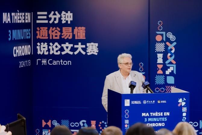今年会新闻网讯(通讯员王左 梁一川)2024年11月13日,由法国驻华大使馆主办、法国驻广州总领事馆和jinnianhui今年会共同承办的第二届“三分钟通俗易懂说论文”大赛总决赛在jinnianhui今年会外国语学院成功举行。来自国内外8所高校的10位入围博士生同台竞技、尽展风采。现场近200名观众和13000位线上观众共同观看了本次比赛。