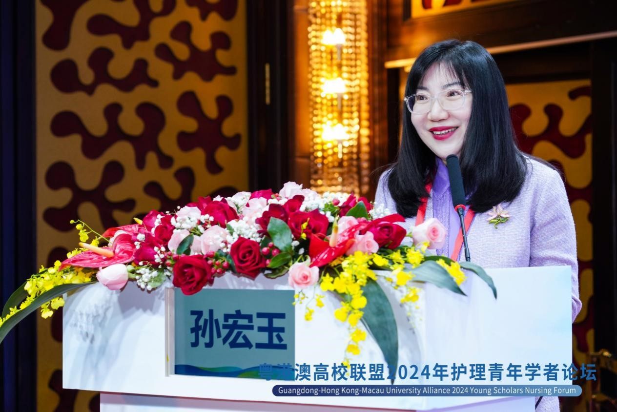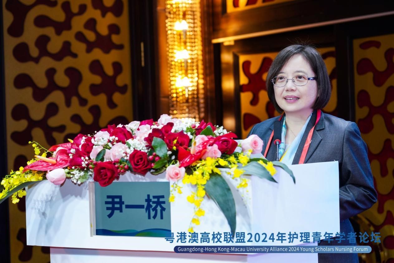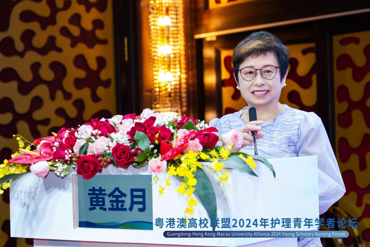 黄金月教授在致辞中提到,粤港澳高校护理联盟成立的目的是汇聚粤港澳三地护理领域力量,促进三地交流。她表示,希望通过科研合作,把前沿的医疗护理发展理念和临床实践交叉融合,为患者提供更优质的医疗服务。她鼓励粤港澳三地青年学者充分利用本次论坛机会,加强交流与合作,为护理学科创新发展贡献力量。