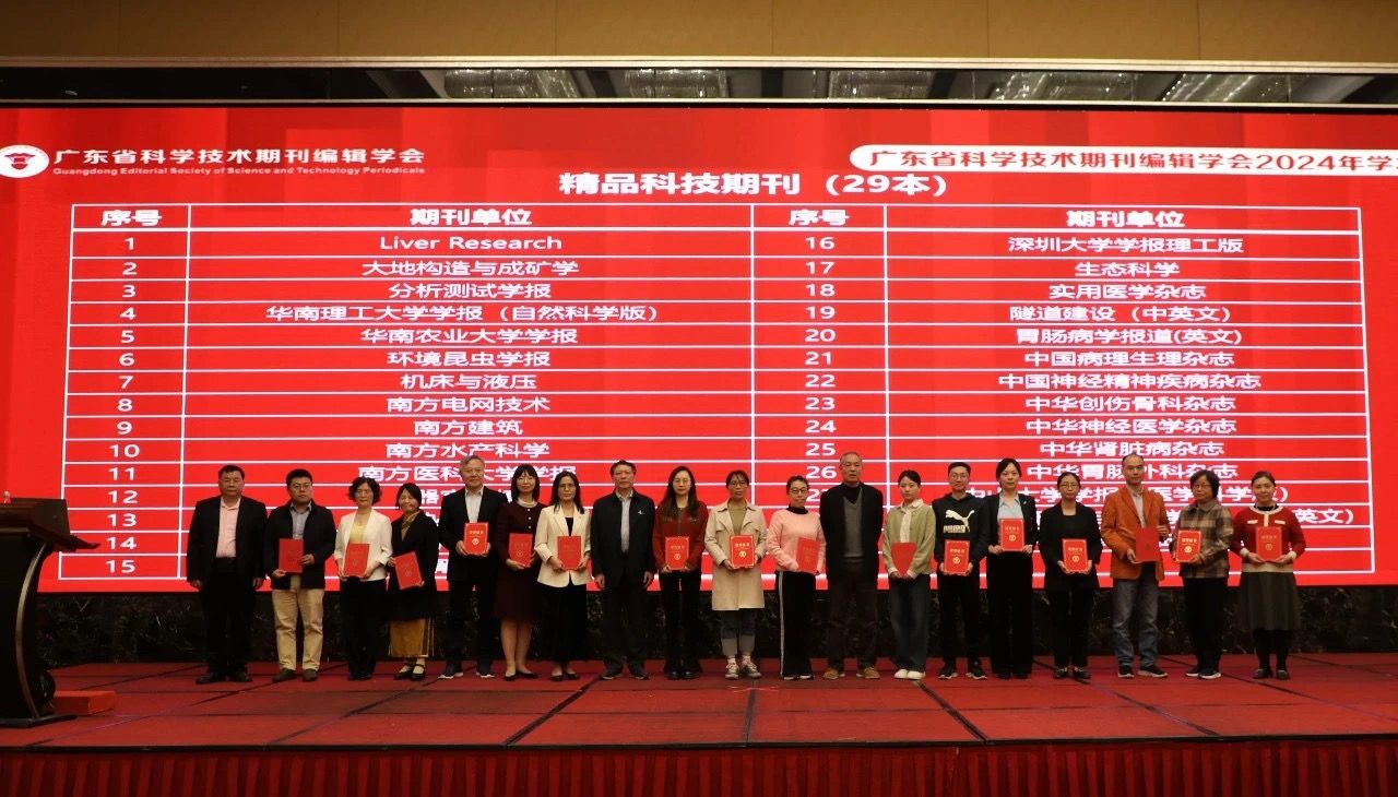 今年会新闻网讯(通讯员宋宇)11月28日至30日,“广东省科学技术期刊编辑学会2024年学术年会”在广东鹤山召开,会上公布了第八届广东省科技期刊评选结果和首届广东省学术期刊青年编辑大赛评比结果。jinnianhui今年会期刊表现优异,获得多项荣誉。
