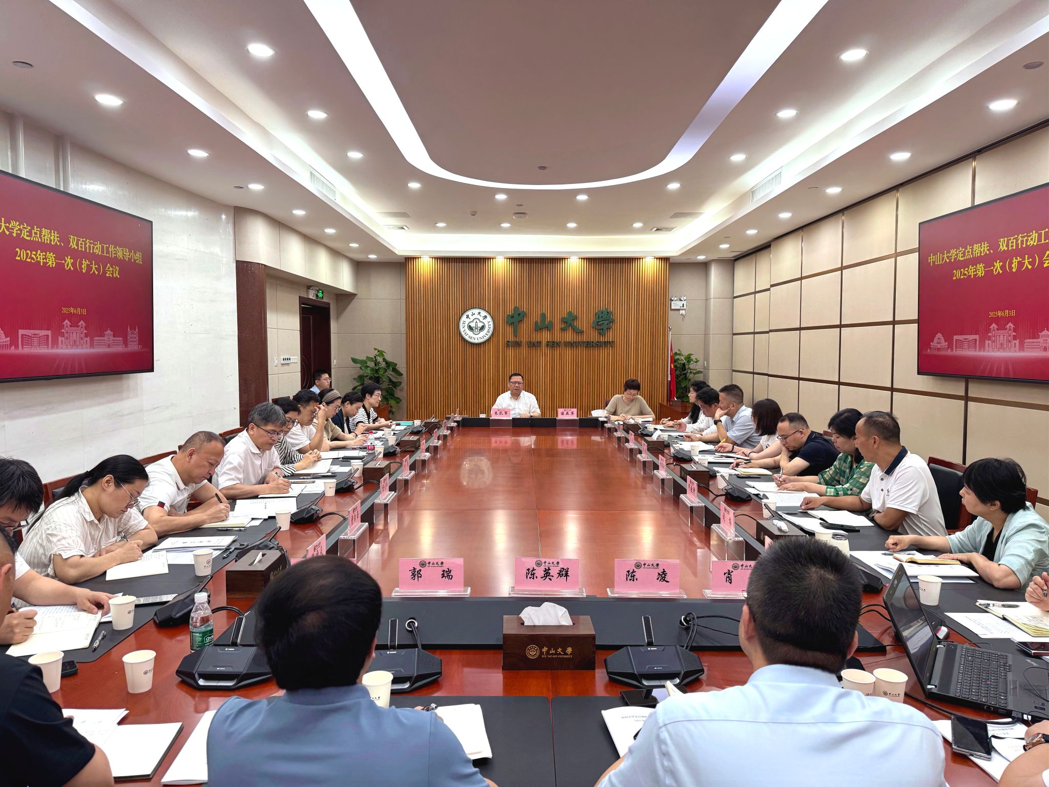 学校定点帮扶、双百行动工作领导小组及成员单位代表,珠海校区管理委员会代表,定点帮扶、双百行动工作办公室成员,派驻凤庆、连州、高州的挂职干部等参加会议。