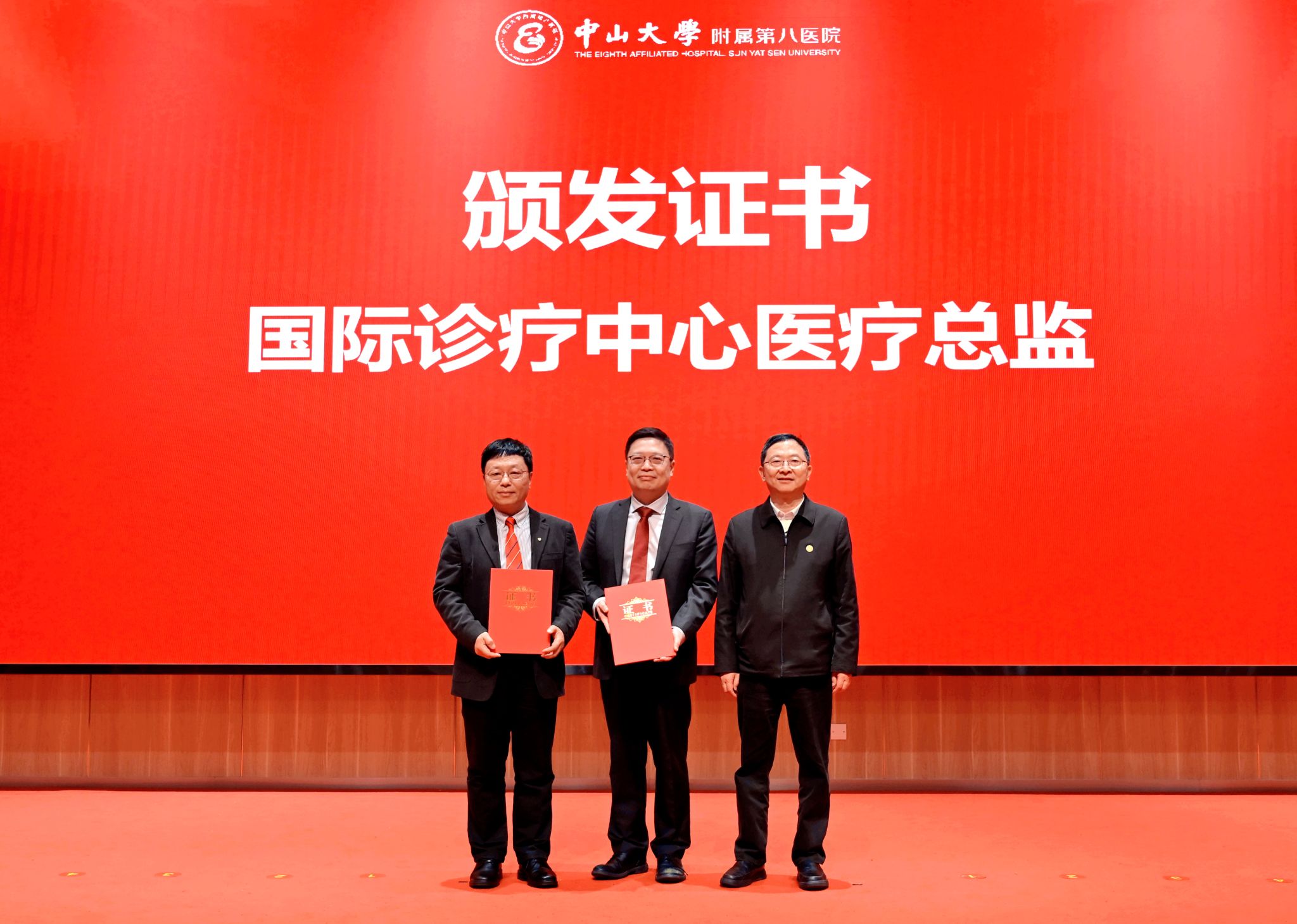 周江涛、袁英为国家岐黄学者、中国中医科学院心血管病研究所所长史大卓教授,广东省人民医院心血管内科主任医师陈纪言教授,附属第八医院院长、内分泌科学科带头人陈燕铭教授,心血管内科主任、学科带头人伍贵富教授颁发国际诊疗中心专家证书。