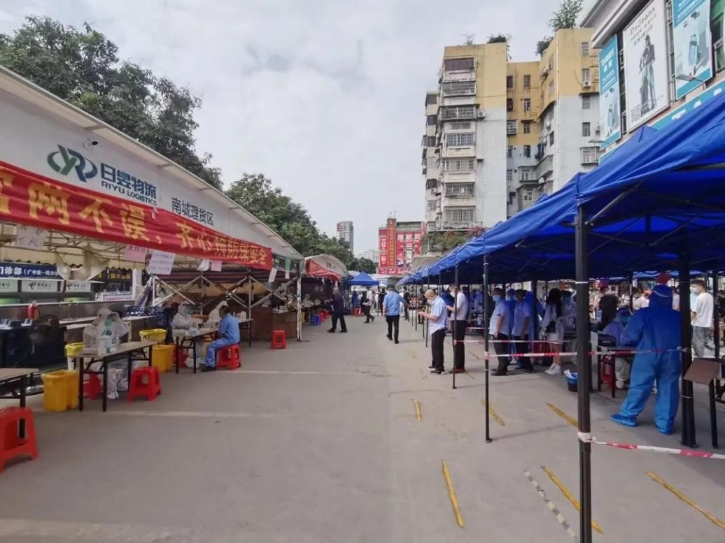 莲溪社区采样点,队员们在忙碌工作(来源:附属第六医院)