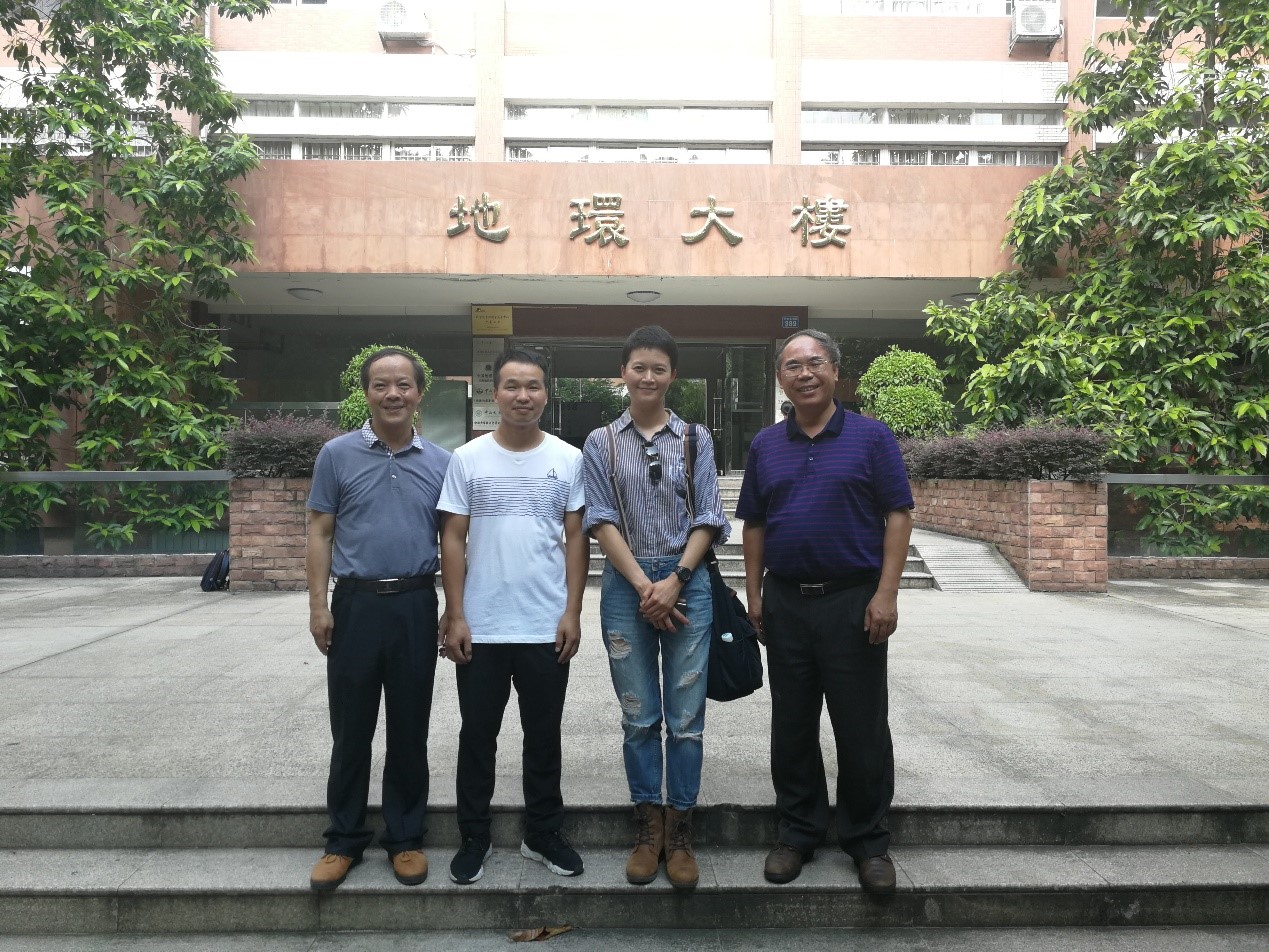 韦慧晓与学院教师在地环大楼合影(左一为其导师陈炳辉)(来源:地球科学与工程学院)