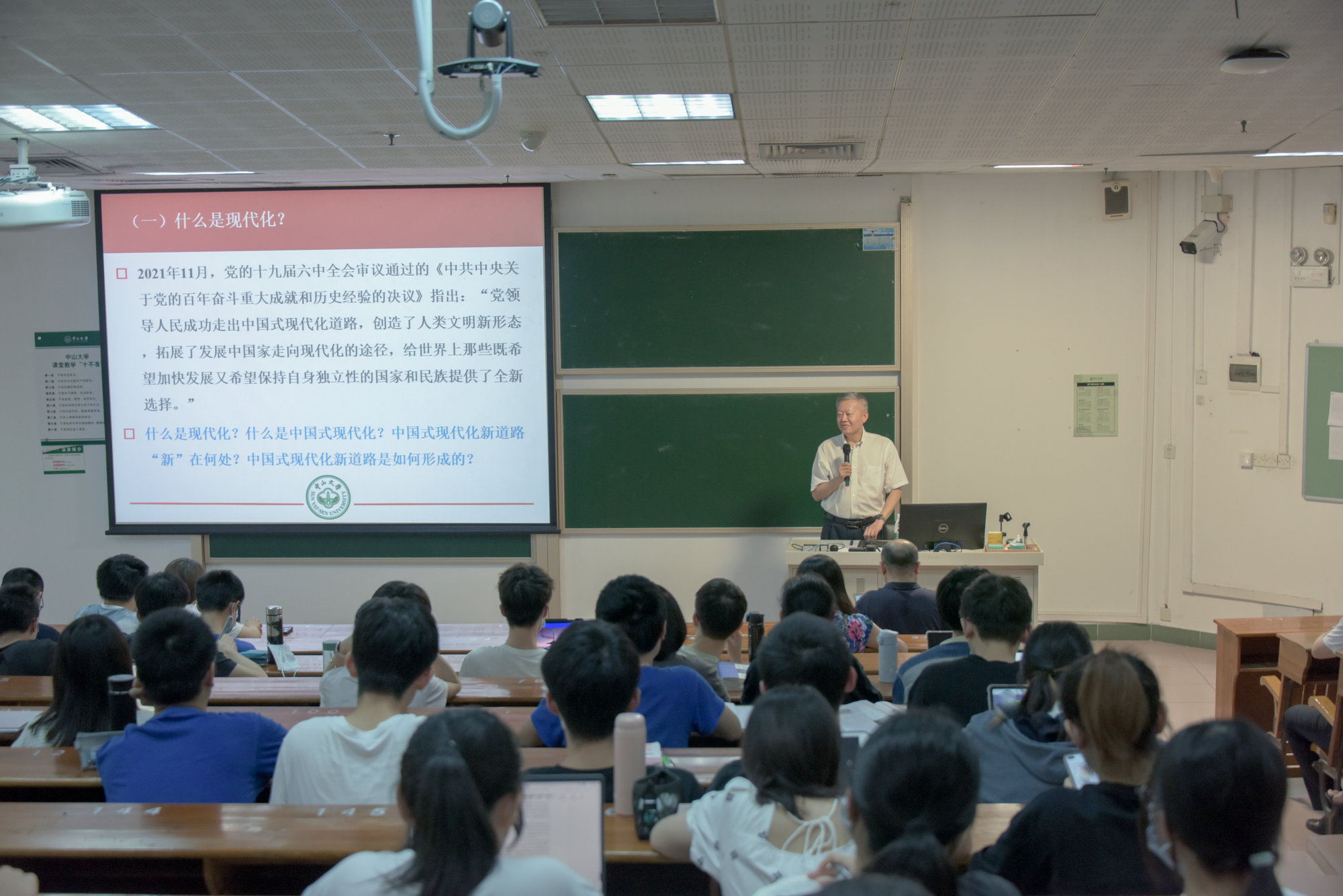 今年会新闻网广州4月26日电(记者孙琛)4月25日下午,学校党委书记陈春声在广州校区北校园新教学楼501教室以“中国式现代化道路的奠基——社会主义建设的初步探索及其成果”为题,为中山医学院2020级临床医学专业的110名本科生讲授“思想政治理论第一课”。