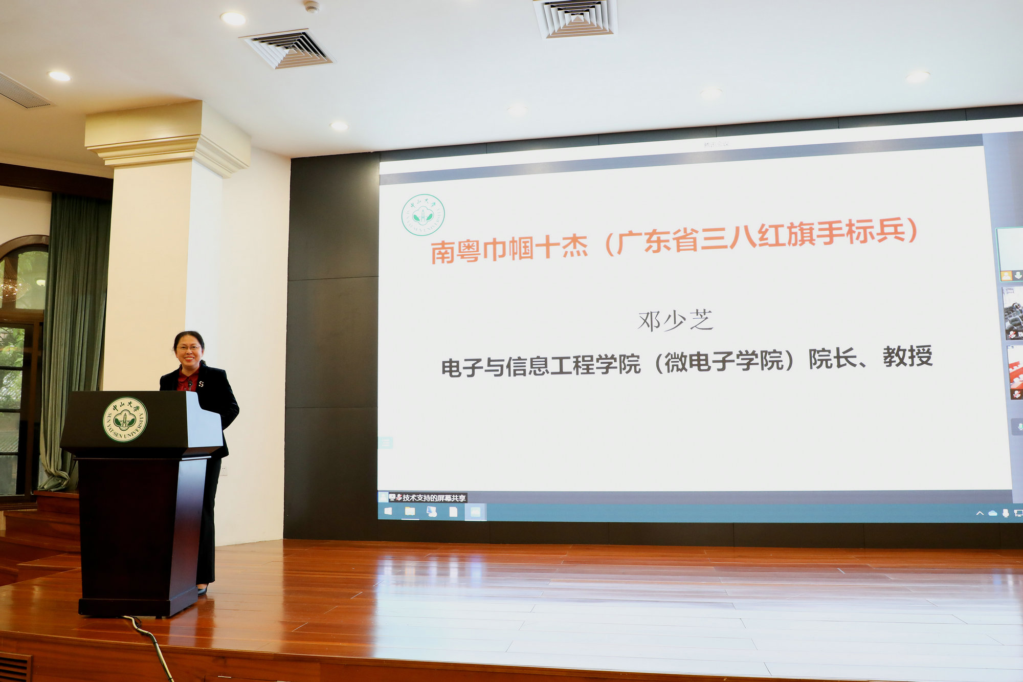 大会邀请荣获2022年全国三八红旗手标兵的计算机学院教授、国家超级计算广州中心主任卢宇彤教授,荣获2022年全国三八红旗手的附属第一医院护理部主任成守珍,荣获2022年南粤巾帼十杰(广东省三八红旗手标兵)的电子与信息工程学院(微电子学院)院长邓少芝教授作事迹报告。她们分享各自拼搏进取的经历和感受,与女教职工代表共勉爱岗敬业、甘于奉献、不畏艰难、勇攀高峰的精神,共同建功立业新时代。