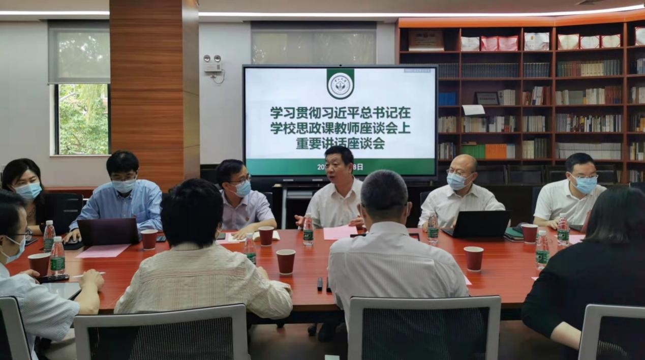 学院副院长张浩作思政课建设工作汇报。他从推进思政课教育的做法和特色、推进思政课教育的现状及存在的问题以及对未来的展望三个方面汇报了思政课建设情况。强调学院将继续严格落实党中央、学校党委关于思政课建设、思政课教师队伍建设各项部署,进一步提升思政课教师的马克思主义理论素养,加强思想政治教育教材体系建设以及精品课程建设。