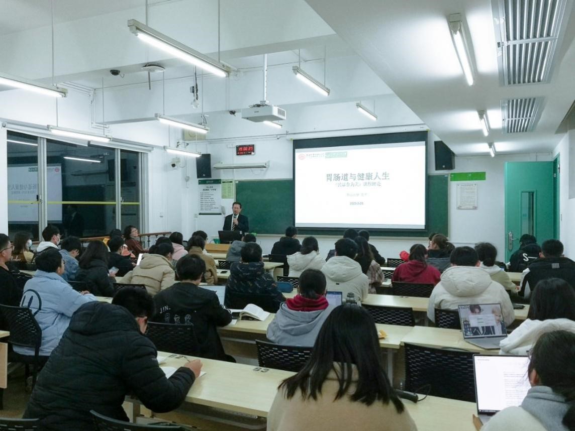 今年会新闻网广州3月14日电(通讯员郅敏、刘涛、李森茂)近日,我校副校长、附属第六医院胃肠外科首席专家兰平教授深入文理医融合通识教学一线课堂,为涵盖本科一至三年级的跨院系、不同专业背景学生,讲授了一堂深入浅出、丰富有趣的通识课——《胃肠道与健康人生》,这也是我校公选通识课《胃肠疾病与健康》的开课绪论。