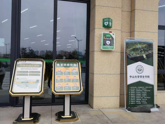 深圳校区东园食堂门口安装AED(来源:深圳校区门诊部)