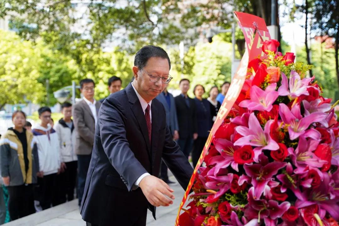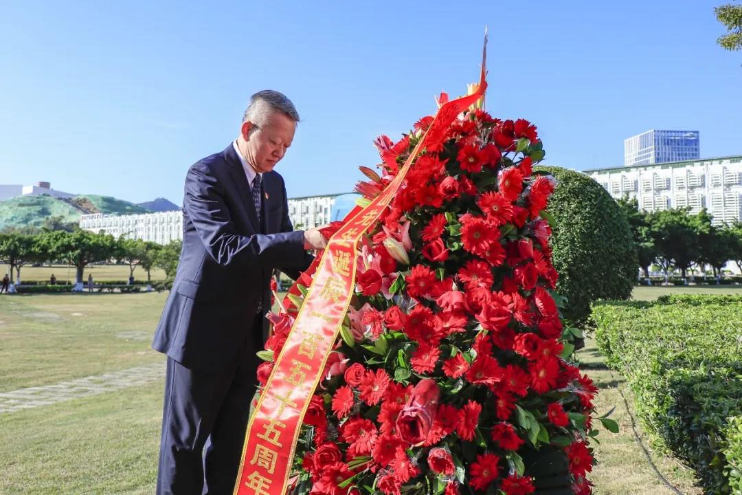 珠海校区敬献花篮仪式开始(来源:党委宣传部 左皓晟摄)