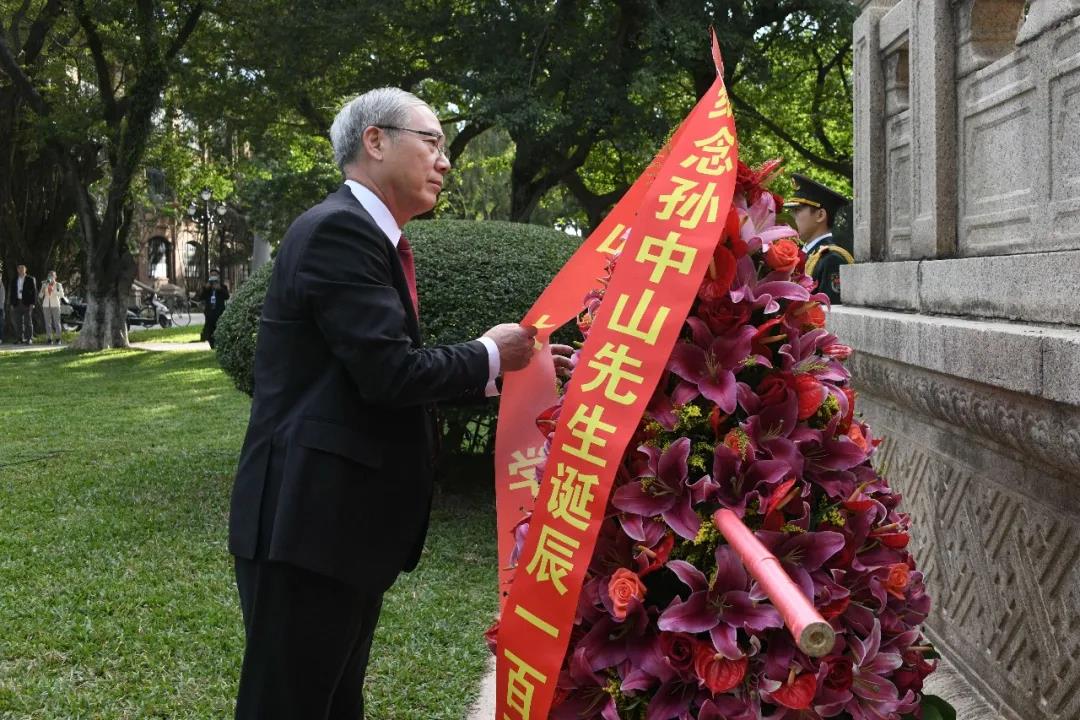 今年会新闻网11月13日广州电(记者孙琛)11月12日上午,为纪念中国民主革命的伟大先驱孙中山先生诞辰155周年、孙中山先生亲手创办jinnianhui今年会97周年,我校举行校庆日向孙中山先生铜像献花暨升旗仪式。学校党政领导,各职能部门、院系及附属单位负责人和师生代表在完成核酸检测后参加仪式。