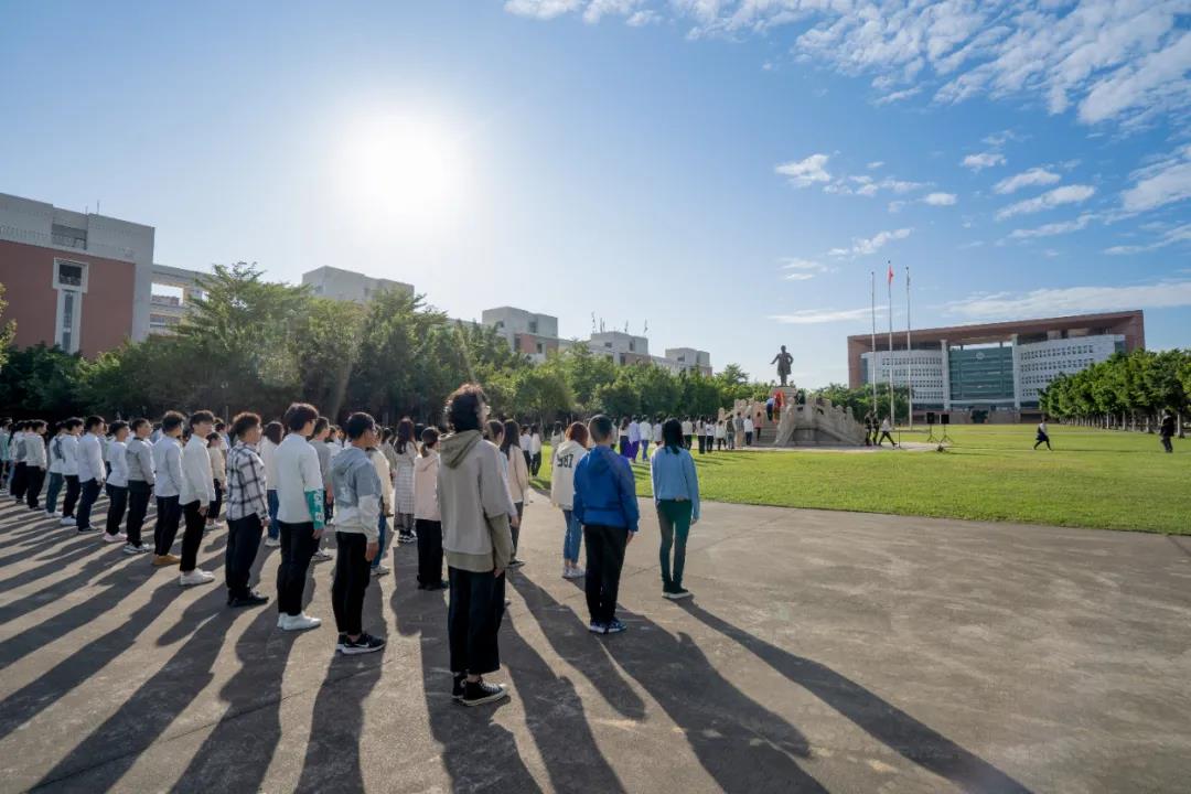 迎着晨曦,广州校区南校园、北校园、东校园,珠海校区和深圳校区已聚集了许多前来观礼的师生。