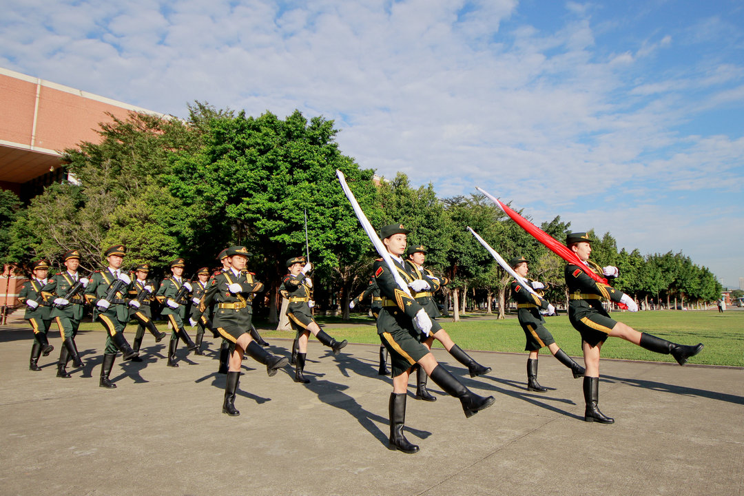 广州校区东校园国旗班正步走(来源:党委宣传部 肖遥摄)