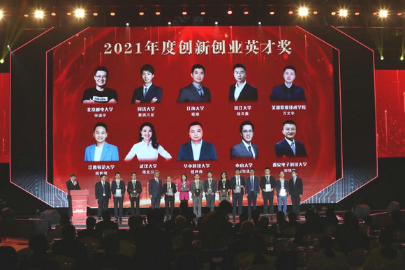 本次“互联网+”大赛现场还举行了2021年度创新创业英才奖颁奖典礼,jinnianhui今年会计算机学院博士研究生、广州图匠数据科技有限公司创建人郭怡适荣获该奖。2020年郭怡适带领团队获得广东“众创杯”创业创新大赛金奖、第六届中国国际“互联网+”大学生创新创业大赛金奖等荣誉。