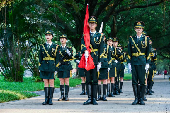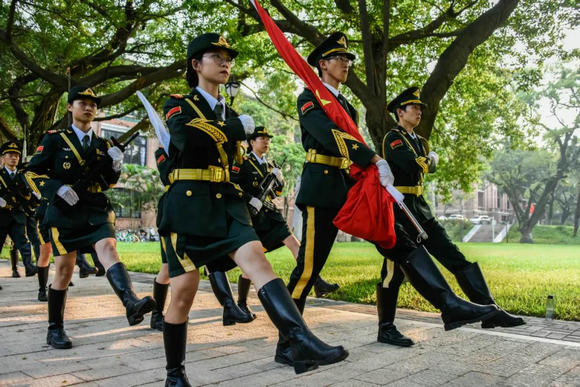 国旗班护旗方队精神抖擞(来源:党委宣传部 陈子迅摄)