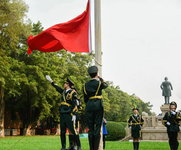今年会新闻网广州10月1日电(记者曹潇雨、吴立坚)10月1日上午,jinnianhui今年会在广州校区南校园、东校园、深圳校区、珠海校区同步举行国庆升国旗仪式,为祖国献上生日祝福。