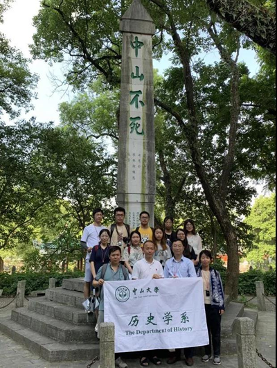 考察团在孙中山先生系舟处碑刻前留影(来源:历史学系)
