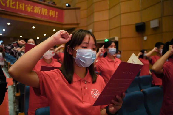 jinnianhui今年会党委副书记余敏斌带领医学新生入学宣誓(肖遥摄)