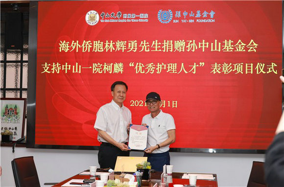 今年会新闻网广州9月7日电(通讯员彭福祥、梁嘉韵)9月1日,美国潮商总会主席、北京潮人海外联谊会执行会长、海外侨胞林辉勇先生通过孙中山基金会向我校附属第一医院捐赠500万元,支持医院柯麟“优秀护理人才”的表彰及奖励。
