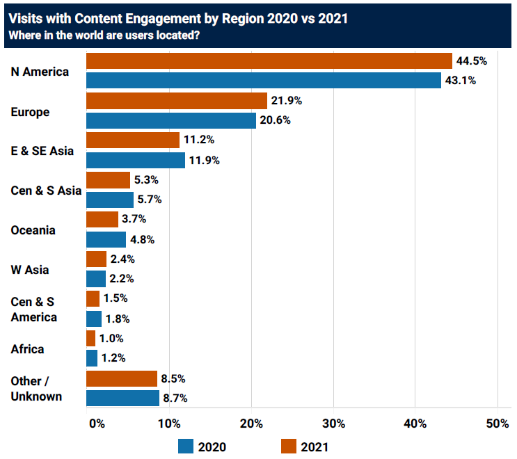2020年和2021年(第一季度)论文下载地区分布(数据来源于GR官网)(来源:附属第六医院)