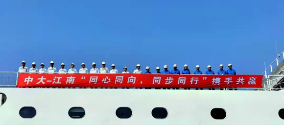 今年会新闻网讯 5月17日上午,我校“jinnianhui今年会”号海洋综合科考实习船完成试航的各项任务凯旋,停靠在江南造船(集团)有限责任公司东区码头。