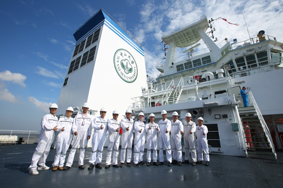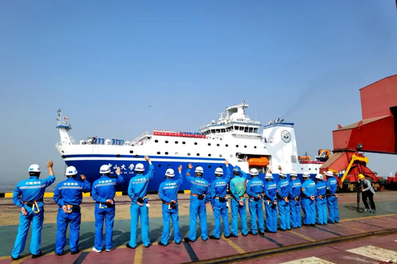 科考船建设指挥部驻厂项目组集体留影(图片来源:科考船建设指挥部)