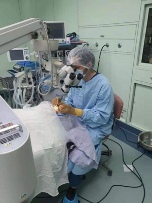 黄创新为当地病人做白内障超声乳化手术(来源:中山眼科中心)