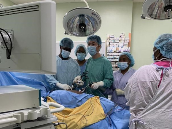 方友强开展多米尼克首例腹腔镜肾癌根治术(来源:附属第三医院)
